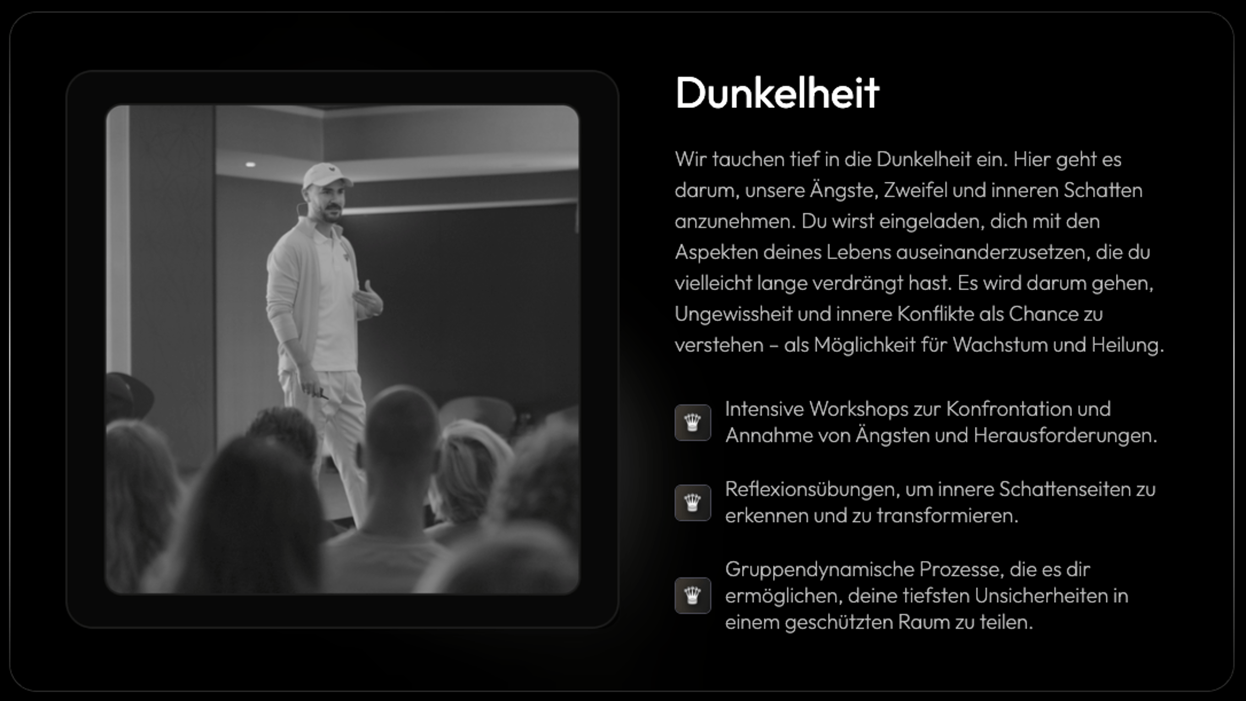 "Leuchtturm in der Dunkelheit" ist mein Lebenswerk. Ein transformatives, neuartiges & modernes Coaching. Von der Verwandlung von Ängsten in Kraftquellen bis hin zu bewussten Entscheidungen, die unser Leben und das der Menschen um uns herum bereichern. Das ist deine Chance über Dich hinauszuwachsen, das große Ganze zu erkennen und die wahre Erfüllung zu finden.